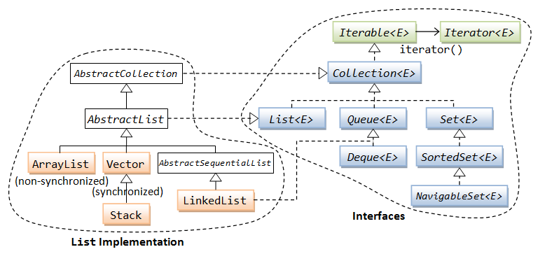 Además, existe una serie de interfaces y clases como List, Collection o Arrays de la que extienden o implementan estas estructuras de colección, lo que permite que además existan operaciones que permiten que se puedan hacer operaciones que combinen distintos tipos de colección y otras estructuras de datos como los arrays.