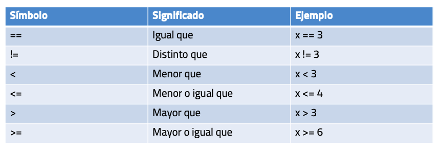 Los operadores de comparación